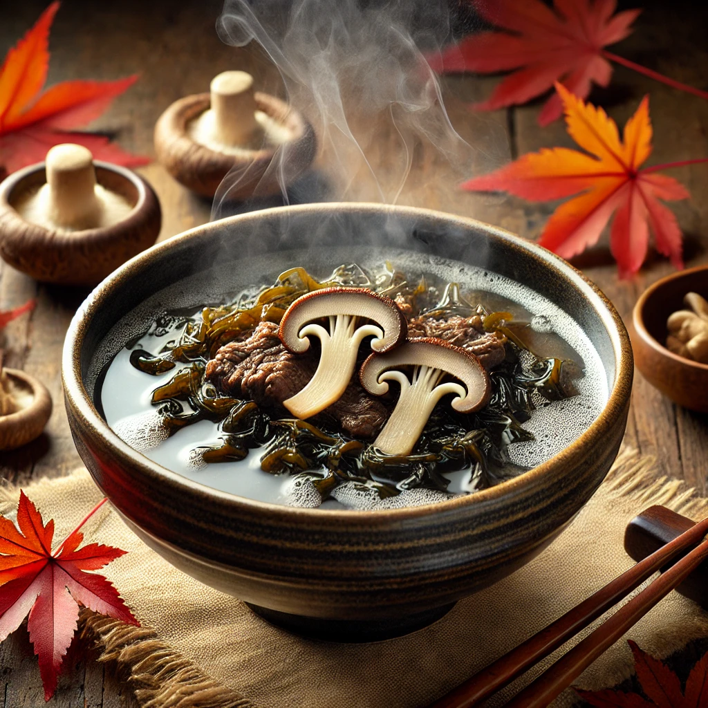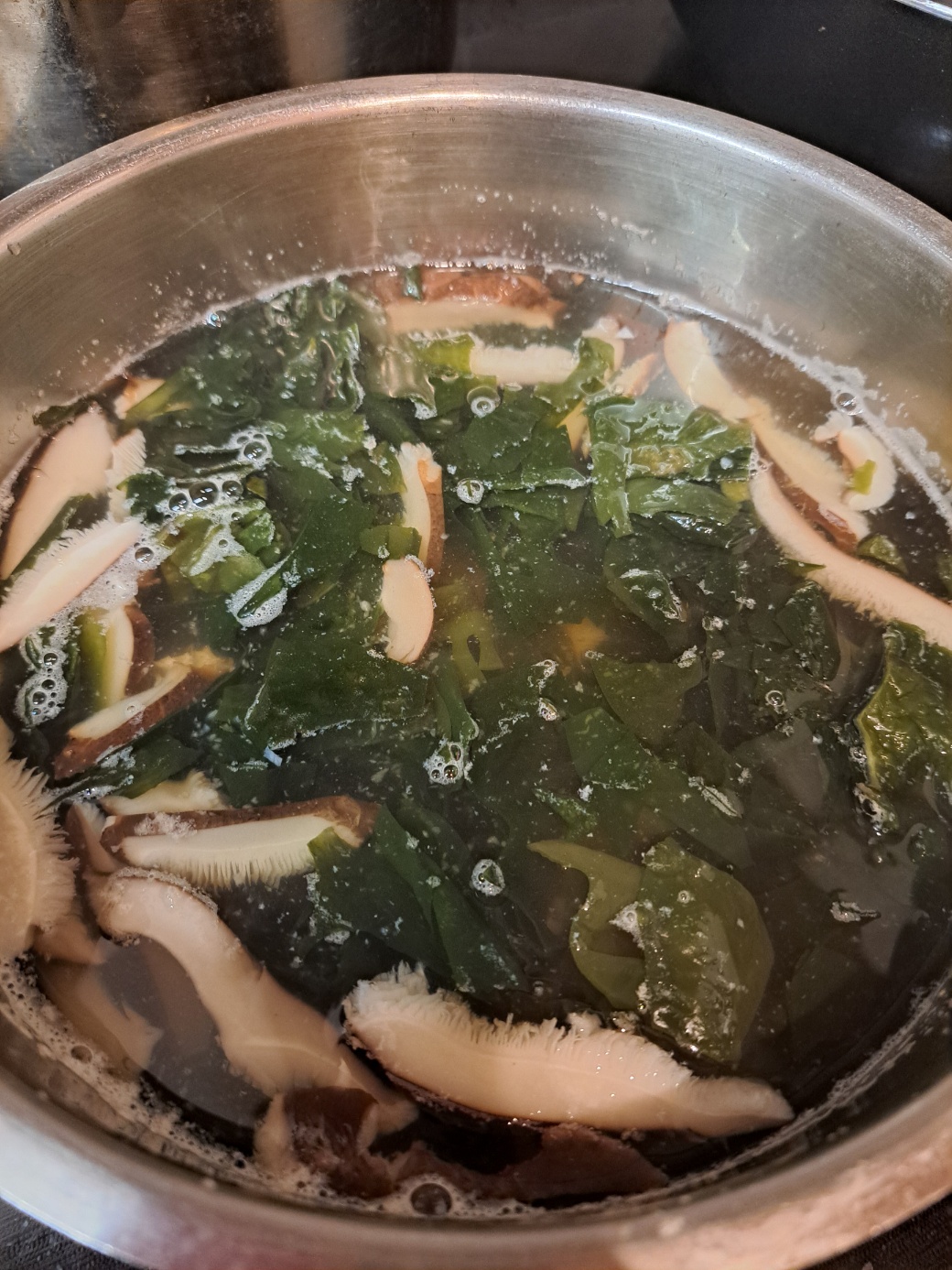 맛을 보니, 벌써 맛내기 끝이에요! 구수하고 부드러운 미역국이 되었어요. 버섯에는 천연 MSG가 많이 포함되어 있다고 하잖아요! 실감 x 100%에요.