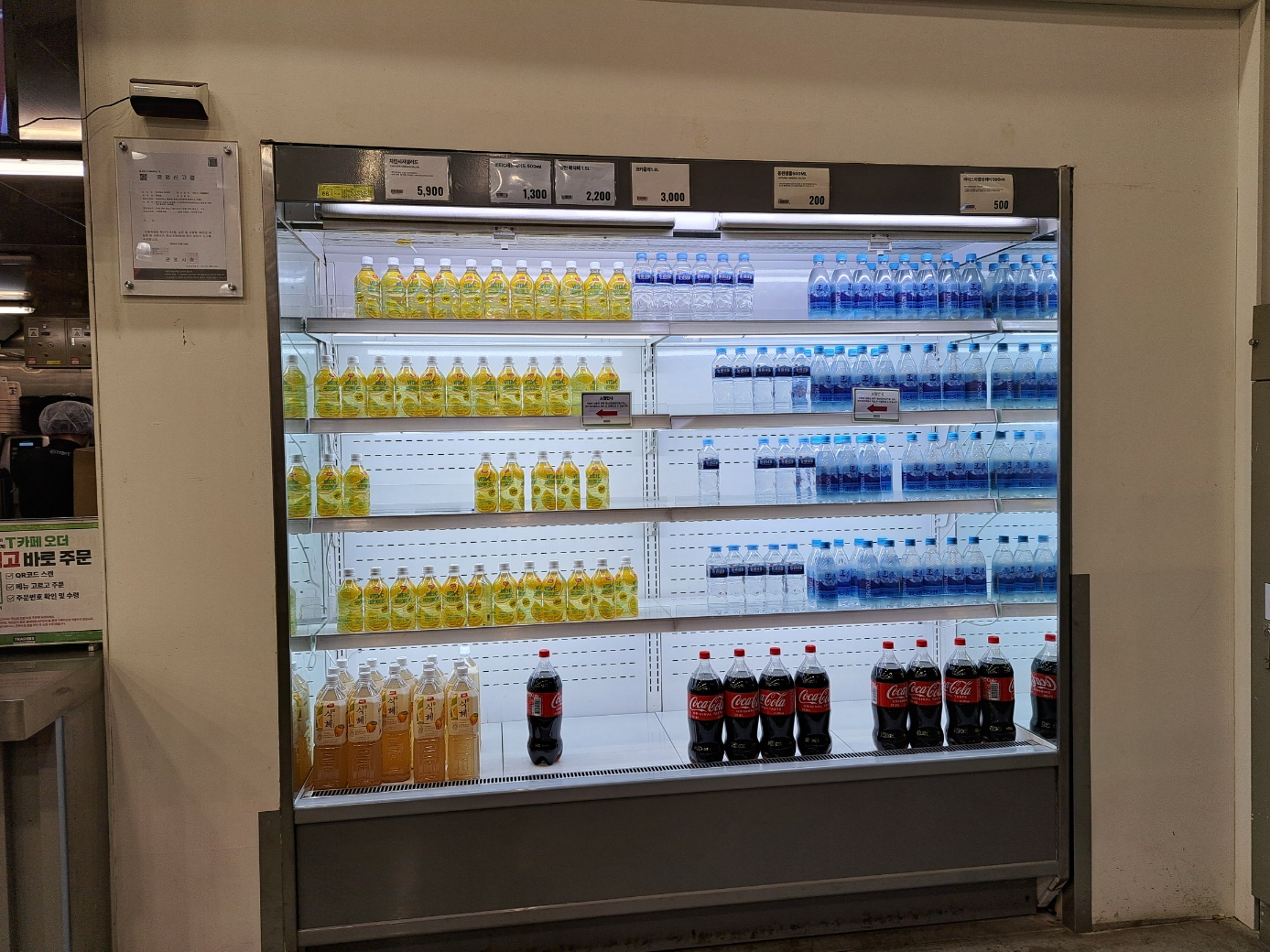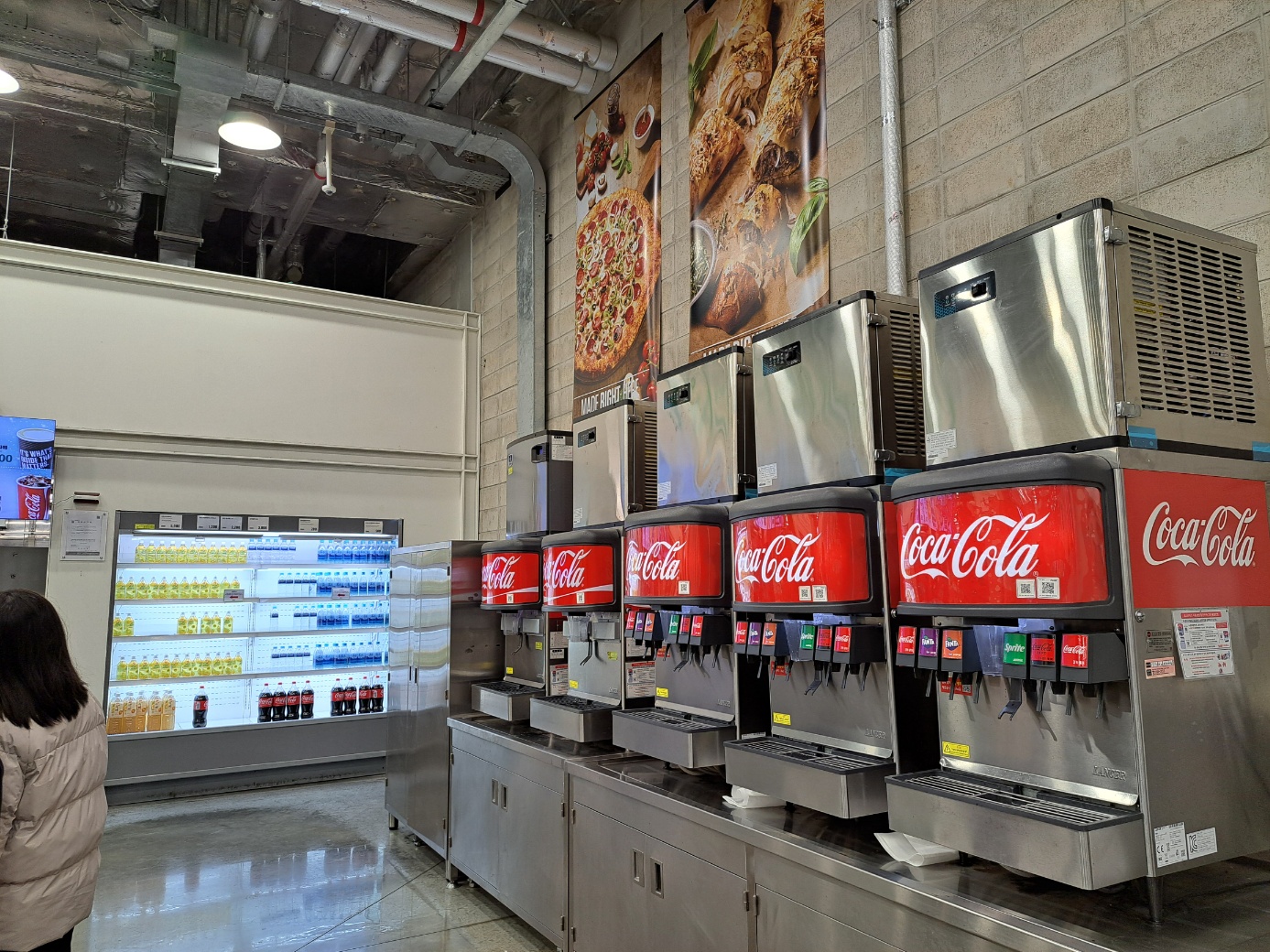 탄산음료 뽑는 기계가 있고 음료 판매대가 있는 걸 보니 여기가 맞지요.