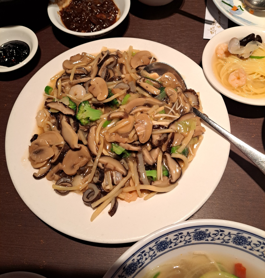 유삼슬은 3가지 재료(해산물, 육류, 채소) 얇게 채 썰어 볶은 다음, 걸쭉한 소스로 완성하는 중국요리잖아요? 이중본의 유삼슬은 해산물로 해삼과 새우가, 야채로는 죽순, 표고와 양송이, 그리고 브로콜리와 팽이가 들어있었어요. (육류가 들어있지 않은 건 별로 섭하지 않아요.)