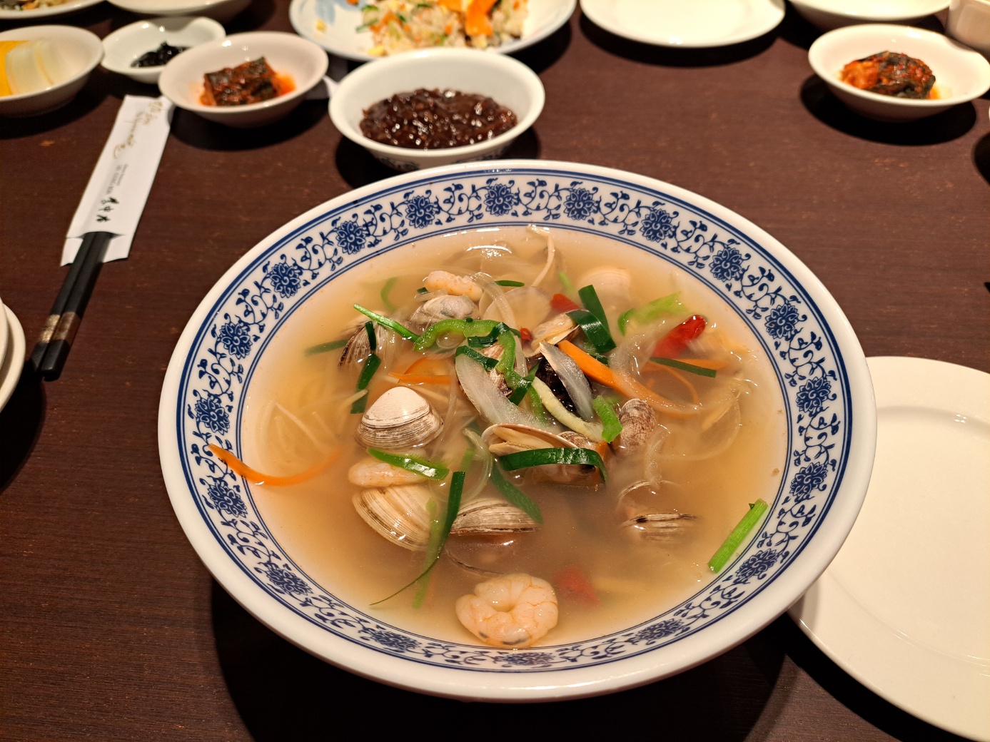 하이디의 식사는 사천탕면이었어요. 와~! 저는 이거 진짜 맛있게 먹었어요. 조개와 해물도 많이 들어있었지만, 면이 특별히 쫄깃하고, 계속 연구하는 중식집 다운 면모가 있네요! 국물은 칼칼하면서 구수한, 약간 나가사끼 짬뽕 국물 비슷하다고 할까요? 맛있게 먹었어요.