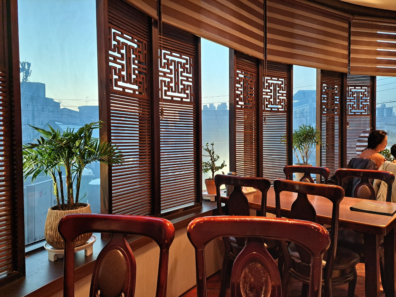 홀에서 창가로 안내를 받았는데요, 우리가 들어간 곳이 2층 같은 1층인 듯 (확인 안했음). 홀의 중앙을 실내 정원으로 꾸며 놓은 것도 멋지군요!
