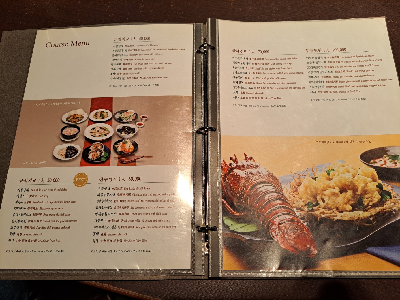 바로 이중본의 모토 "맛으로 표현된 또 하나의 예술", 과연 그러한지 음식의 맛을 봐야 합니다.